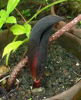 Allow me to begin by categorically stating that I love cats. And there are currently three in the house living their merry ways as much and as often as they want. But let's admit it, not everything about them is rosy. Sometimes it's also the color of poop. I have a number of plants that go dormant in preparation for next season's growth, mostly Amorphophallus , but also terrestrial orchids, gingers, gesneriads, Dracontium , Gloriosa , and Tacca leontopetaloides . Unfortunately for these plants and their napping tubers/rhizomes, the cats see their 'empty' pots as open invitations to take a dump to. Which is why you see these pots bristling with plastic utensils, in the hopes that barriers such as these are enough to dissuade cats from dropping their unwelcome payloads. What is the batting average, you may ask. For about ten pots, none gets a generous dosage of cat crap. But the law of averages begin to swing unfavorably when we start talking of more than ten po...
