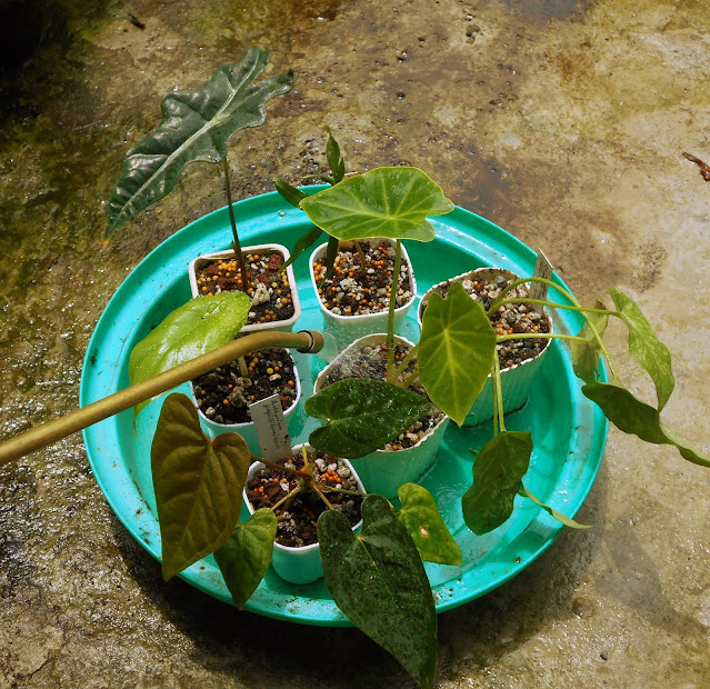 DeleteSome final words: keep watering to a minimum during the first few weeks after acquisition, and never, ever water it from above where water can collect on the leaf axils. The small, lithophytic alocasias are notoriously prone to rotting when they have been disturbed/repotted/taken to a new location. Heck, they might even turn to mush the minute you look at them funny. It's past the prima donna stage once you see roots meandering atop the medium or squirming above the pot's drainage holes. Hope that helps and seriously hoping here that your plant will thrive for you!